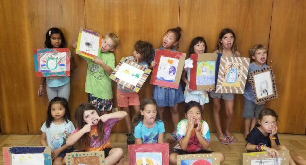 One of my favorite things about spending time with kids is their propensity to explore. Yesterday I had my preschool enrichment class kids paint with unusual things. Stamping fake flowers on paper was mesmerizing for me and for the kids as they explored. The results of their painting were dynamic too.